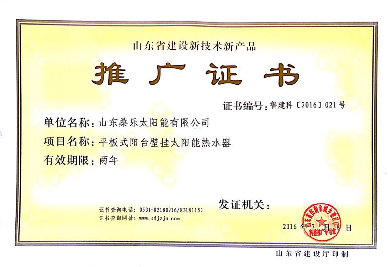 平板式陽臺(tái)壁掛太陽能熱水器推廣證