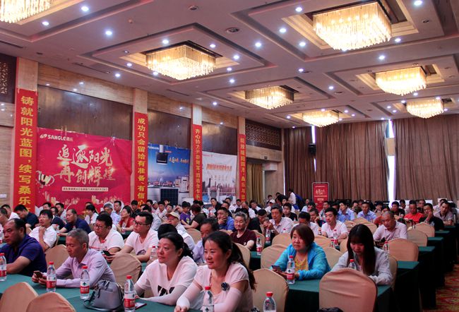 集團(tuán)王雪廣董事長蒞臨會議現(xiàn)場并發(fā)表主旨演講,首先,他代表桑樂集團(tuán)對江蘇經(jīng)銷商的到來表示熱烈歡迎,感謝桑樂家人對公司的信任和支持。董事長從自身經(jīng)商經(jīng)歷講起,講到做任何事情都要堅(jiān)定信心,執(zhí)著,忠誠自己的事業(yè),以平穩(wěn)的心態(tài)發(fā)展自己的事業(yè),財富的積累要堅(jiān)持和執(zhí)著。希望大家眾志成城,鑄就江蘇桑樂新輝煌!桑樂的優(yōu)勢在于技術(shù)優(yōu)勢,打造桑樂“環(huán)保、節(jié)能、綠色”的產(chǎn)業(yè)布局,做好終端市場。追隨桑樂,跟著政策走,選擇桑樂就是選擇成功。江蘇市場近年來穩(wěn)步增長,公司將會做好產(chǎn)品技術(shù)和售后服務(wù)支持,助力2018江蘇市場再創(chuàng)輝煌!
